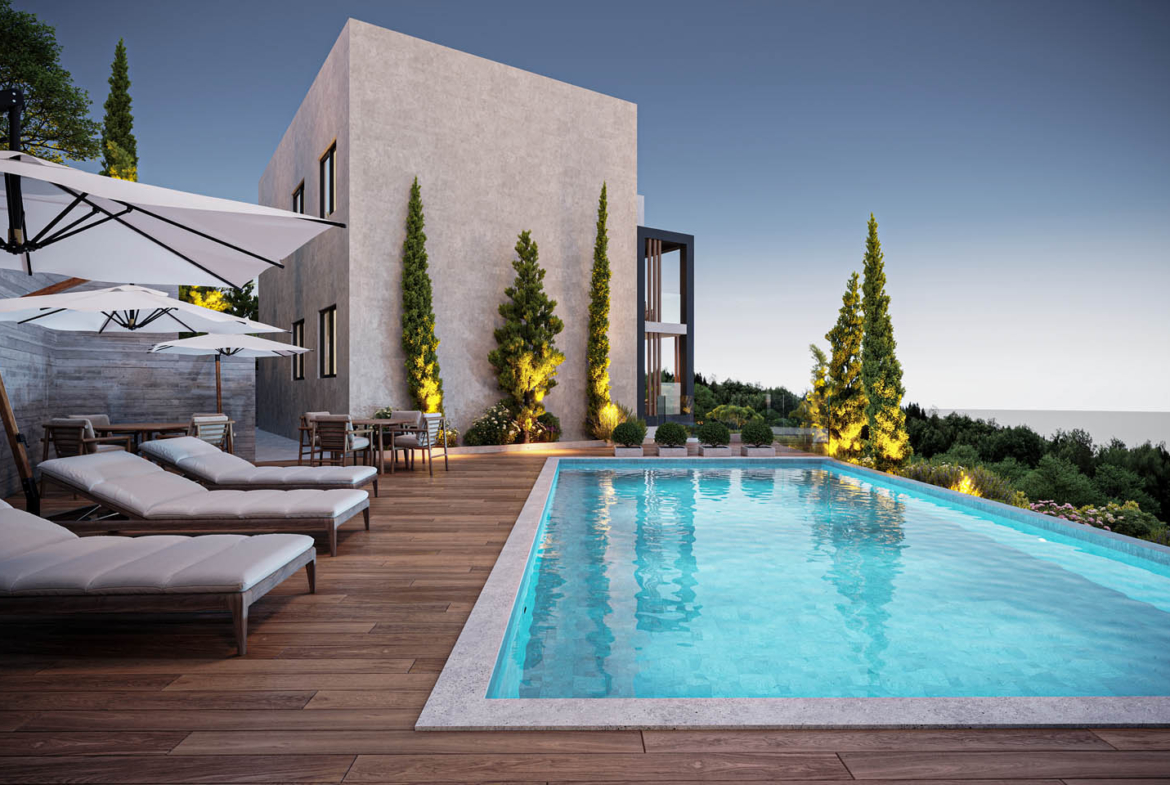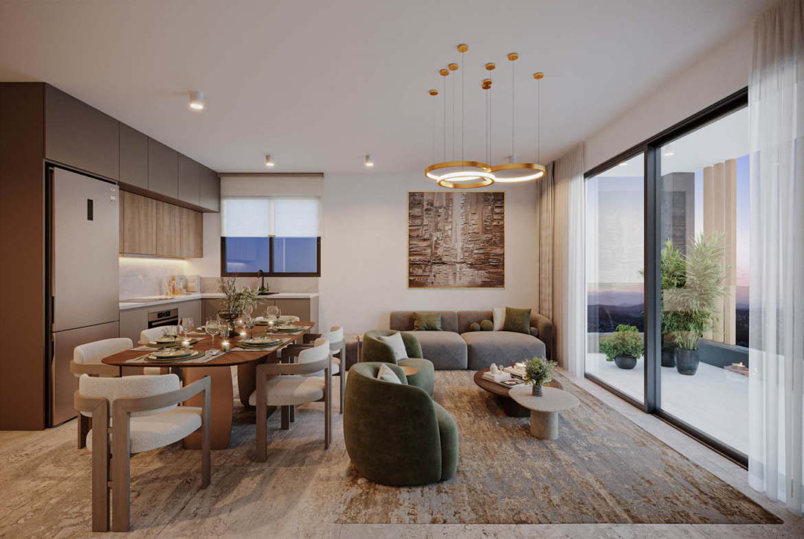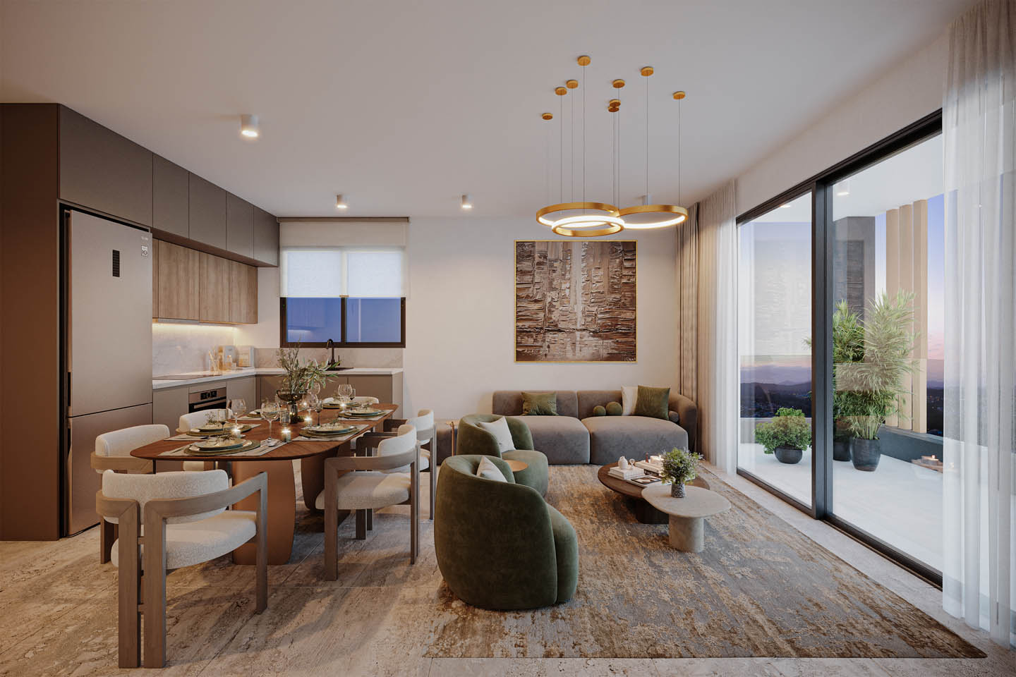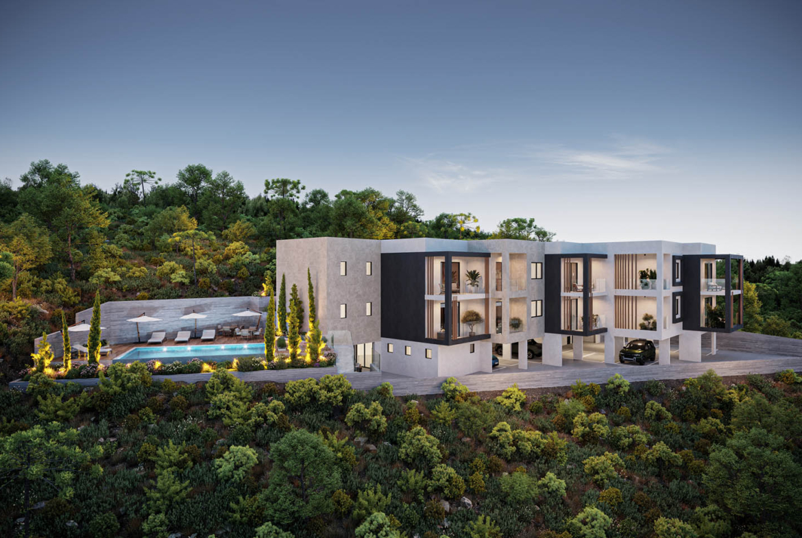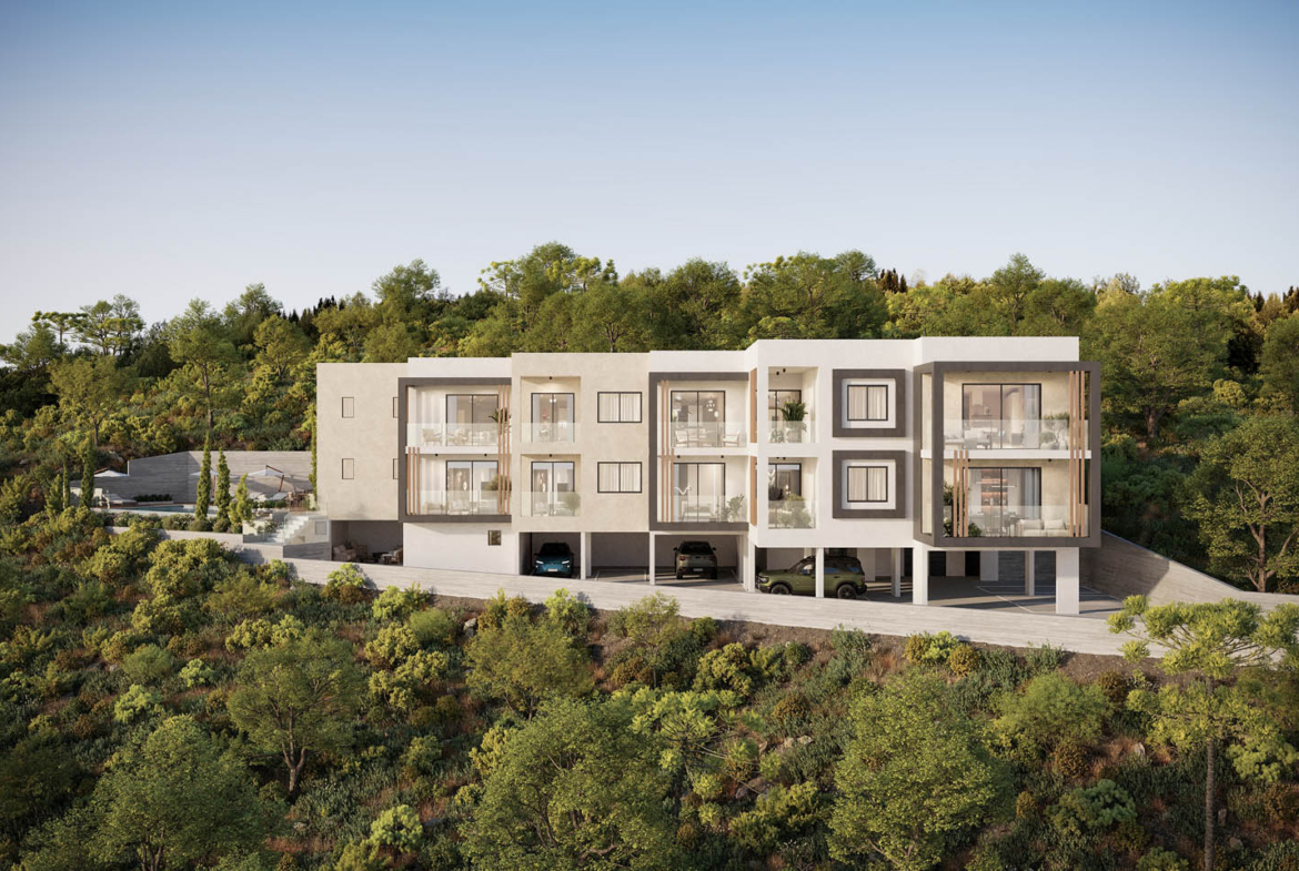 This new architectural project is about to rise on the southern slopes of a lush, green suburb of Paphos, in the village of Konia. A boutique development where every detail has been meticulously thought through will soon occupy a hillside position with uninterrupted panoramic views of the sea. The apartment building will feature a total of 8 residences: 2 one-bedroom apartments, 4 two-bedroom apartments, and just 2 three-bedroom apartments — each designed as an inspiring balance of elegance and functionality.