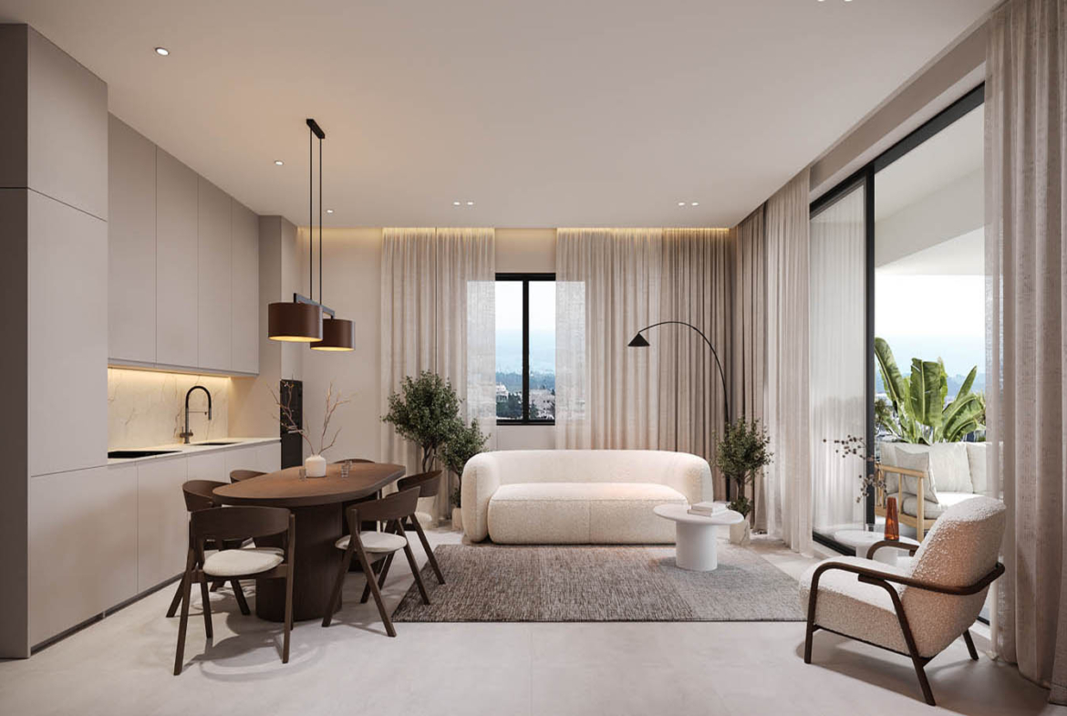 Set on an elevated hillside in the village of Geroskipou, this new residential development is envisioned as a refined architectural composition created for private living, where aesthetics, light and tranquillity come together in perfect harmony. For buyers seeking property for sale in Geroskipou with real character and a rare sense of inner balance, this one-bedroom apartment presents a truly distinctive opportunity.
