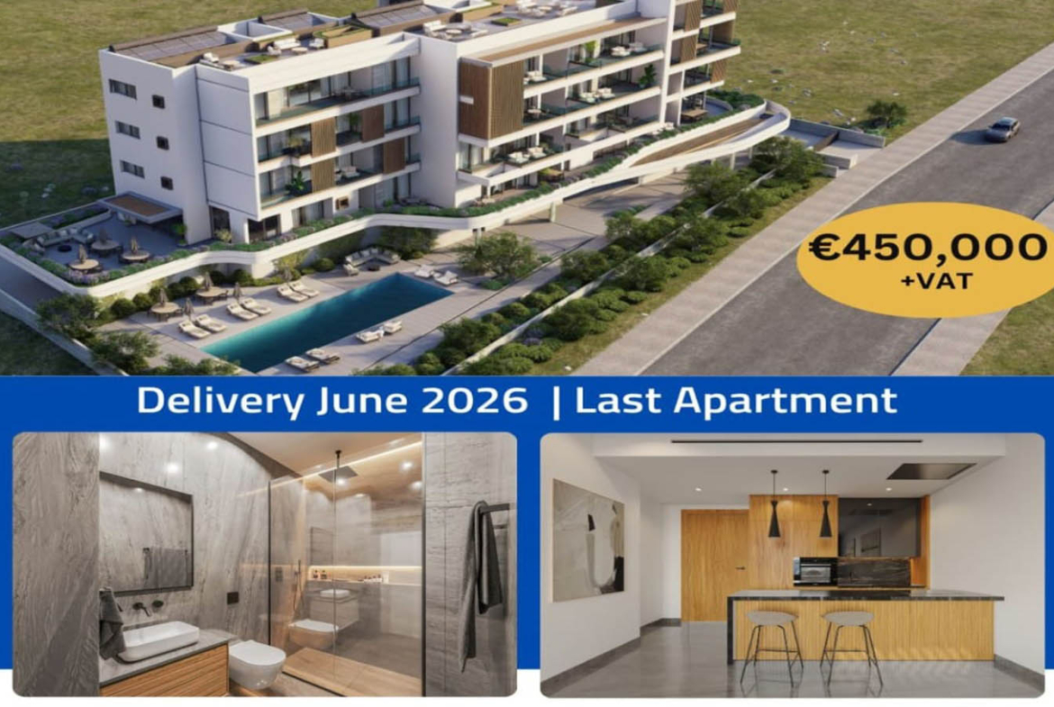 Located in one of Paphos’ most sought-after districts, this apartment is offered at a VERY attractive price — €450,000 + VAT. The property will be delivered with full Title Deeds, ensuring a smooth and secure transfer of ownership.