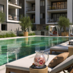 Outside, the development sets new standards for urban living in Paphos. At its heart lies a luxurious communal swimming pool surrounded by wooden decking and contemporary sun loungers. Tropical landscaping enhances a sense of seclusion, while thoughtfully designed play areas make the complex ideal for all generations. Surrounded by greenery, the project offers privacy and calm, even in close proximity to city life.