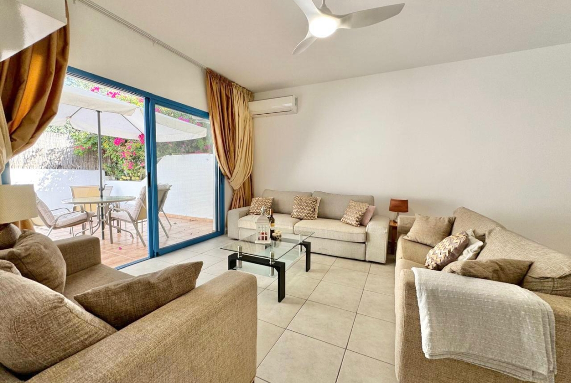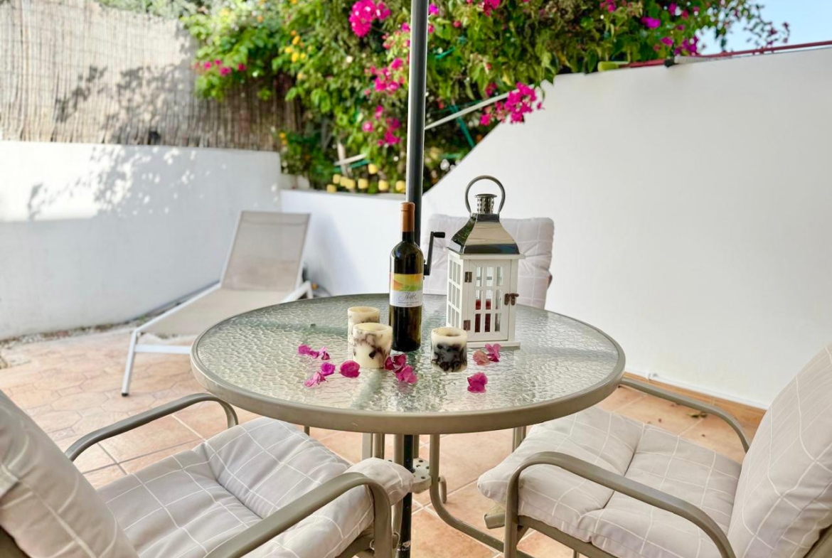 And then — the courtyard. A secluded outdoor space wrapped in greenery and flowering vines, laid with warm terracotta tiles. It feels like a private oasis — ideal for morning coffee, an evening read, or simply lounging barefoot in the shade, breathing in the scent of flowers and the gentle rhythm of island life.