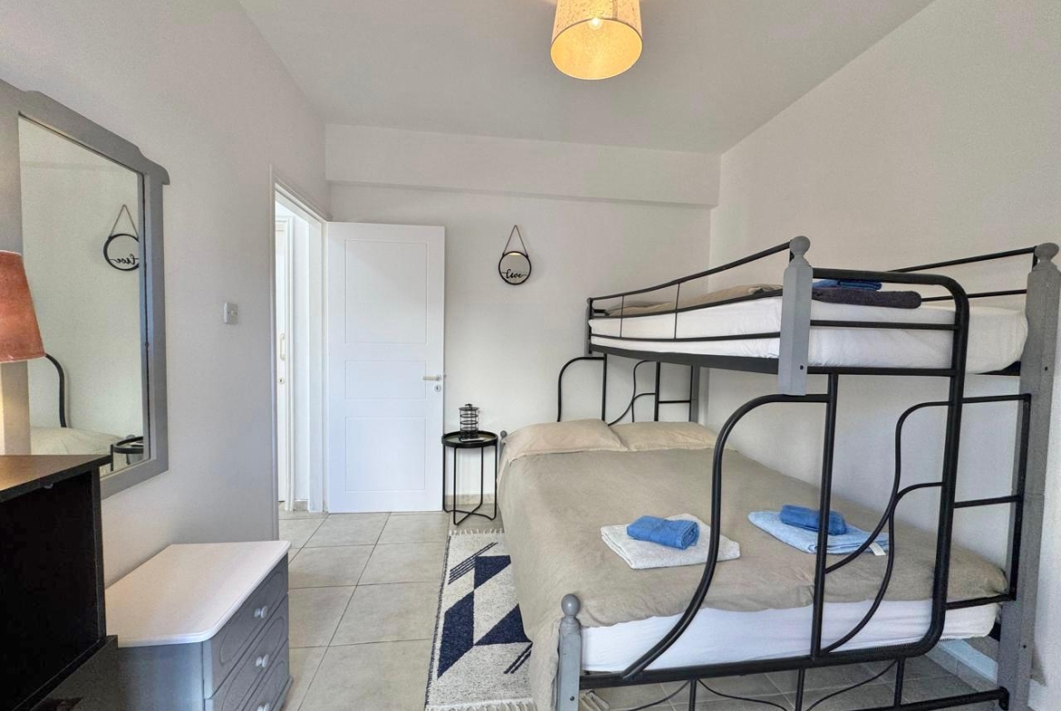 The apartment includes air conditioning — a must-have in the Cypriot climate — and hot water is powered by solar panels, offering comfort with efficiency. Private parking ensures you’ll never have to hunt for a shaded spot, which, as anyone living on the island knows, is worth its weight in gold.