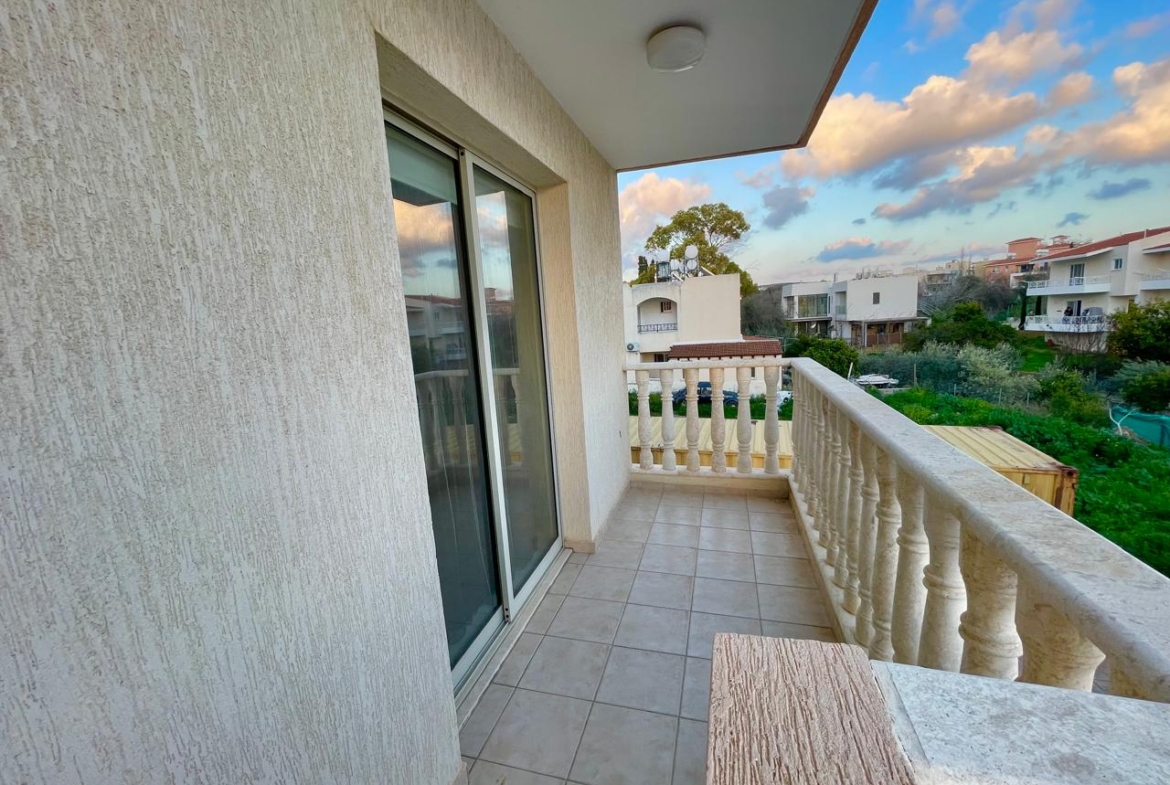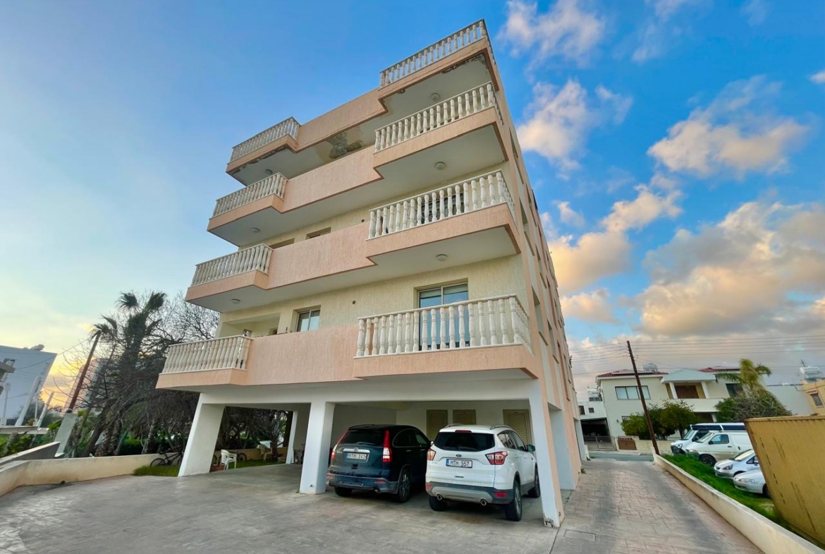 The atmosphere of this well-kept, low-rise building in Geroskipou is shaped by subtle details: the soft evening light resting gently on the walls, the quiet neighborhood where you can hear the breeze moving through the trees, and a sense of space that simply feels easy to live in.