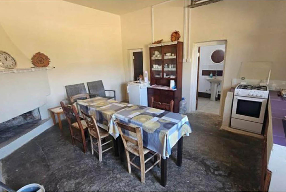 This home in Ineia offers, quite simply, what matters most: space, quiet, and the freedom to plan life on your own terms. Step through the wooden gates and it feels as though city habits are left somewhere far behind—beyond the low stone boundary wall and the narrow village road.