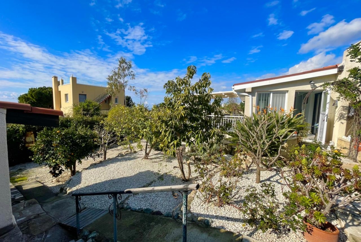 The plot is generously sized at 810 m², and every meter has been thoughtfully planned, carefully maintained, and filled with soul. There’s room here for relaxing, for walking barefoot on pebbles, for lazy reading in the shade of the trees — and, of course, for slow breakfasts on the veranda, with views of the garden and the sea on the horizon. Because yes, the horizon is visible from here, and it shifts in color throughout the day, reflecting the ever-changing shades of the Cypriot sky.