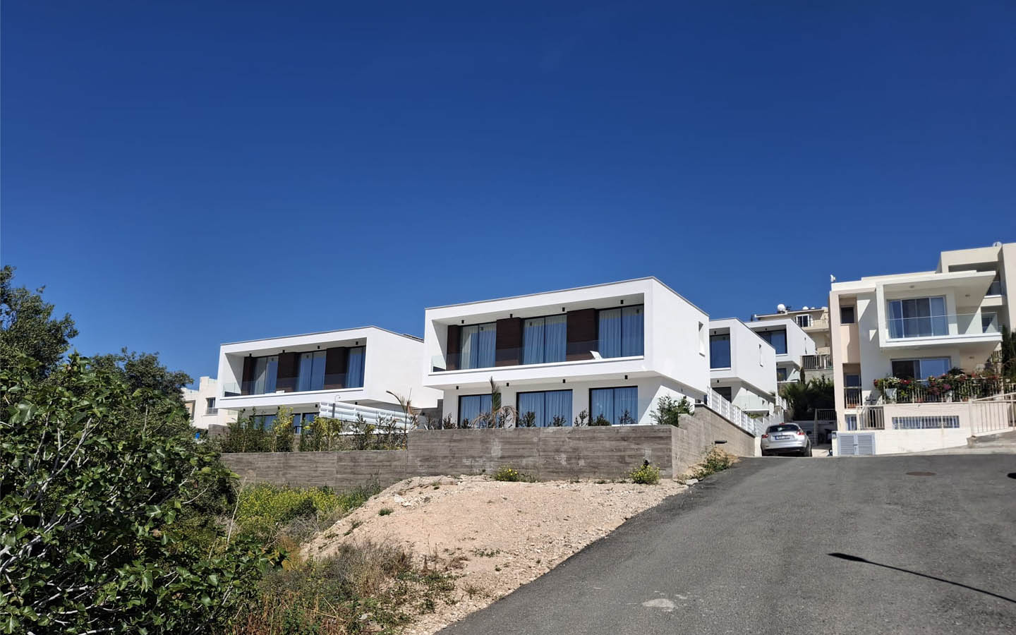 The house is located in a prestigious complex in Chloraka, a suburban area of Paphos, where modern villas occupy a favourable elevated position. This location offers a rare advantage: on one side, the quietness of a residential neighbourhood and open natural surroundings; on the other, proximity to the sea, Paphos town centre, the shopping mall, schools, restaurants, hotels, and all everyday city conveniences. Here, there is no need to choose between peace and infrastructure, because both are successfully combined in one location.