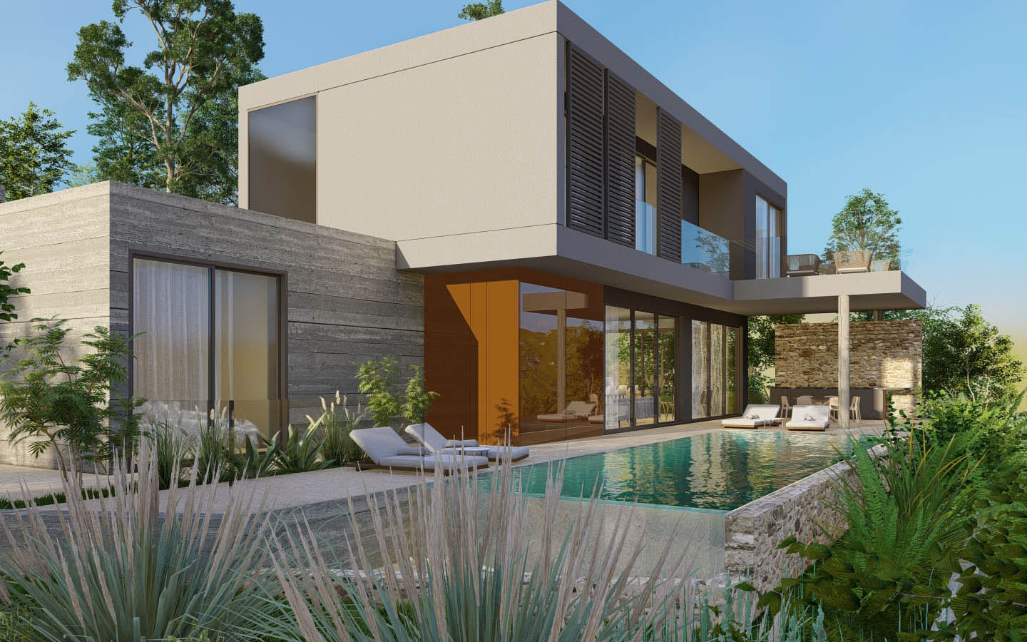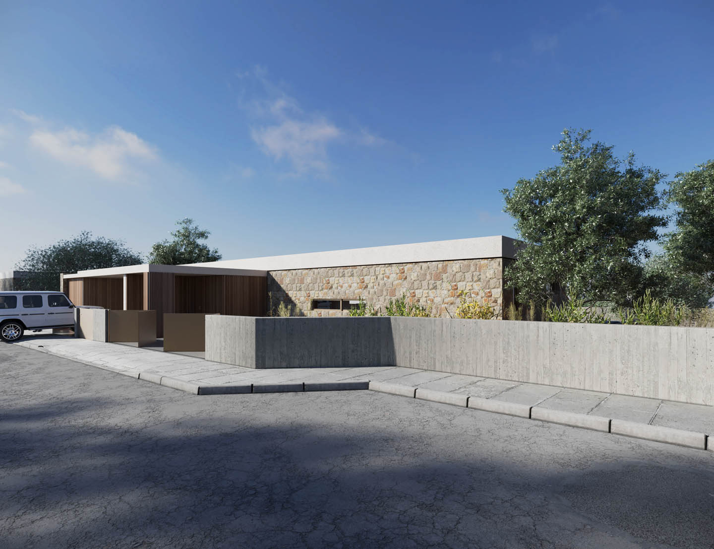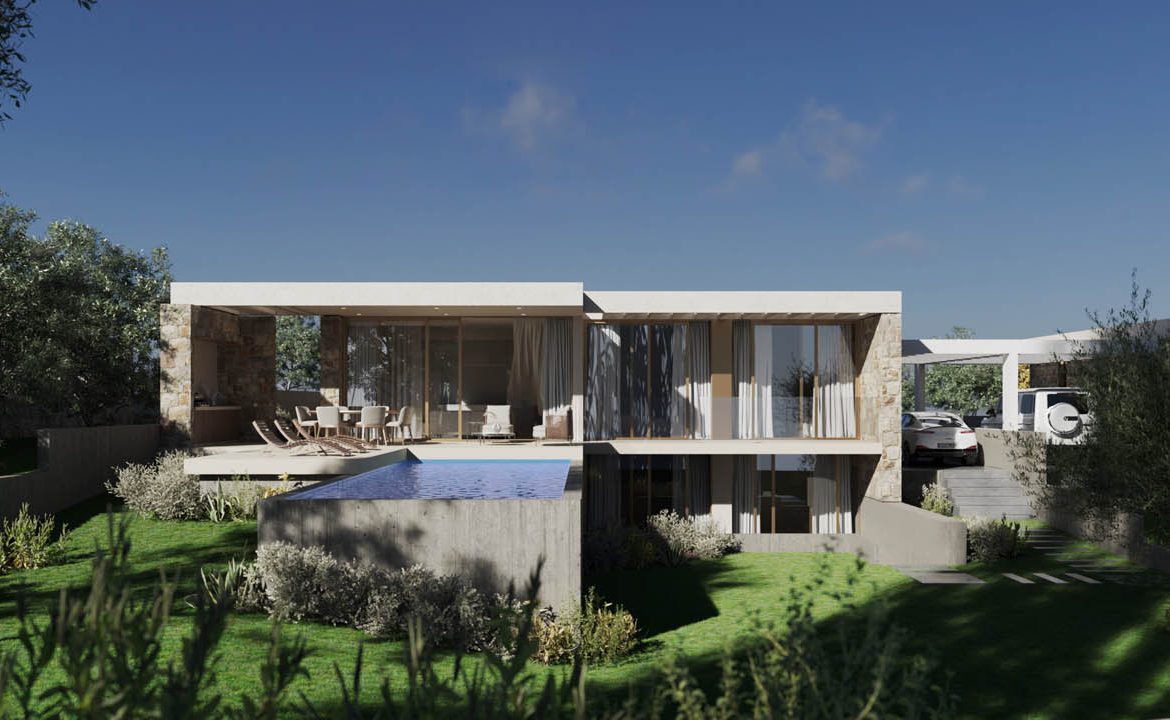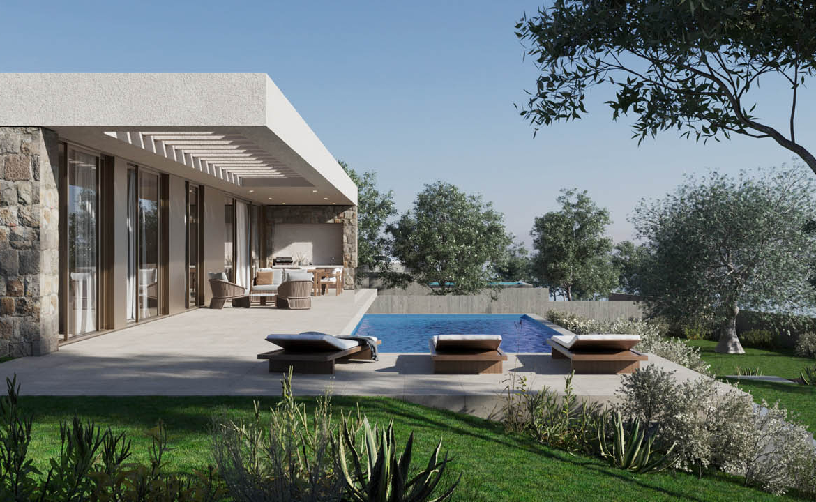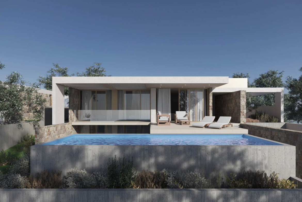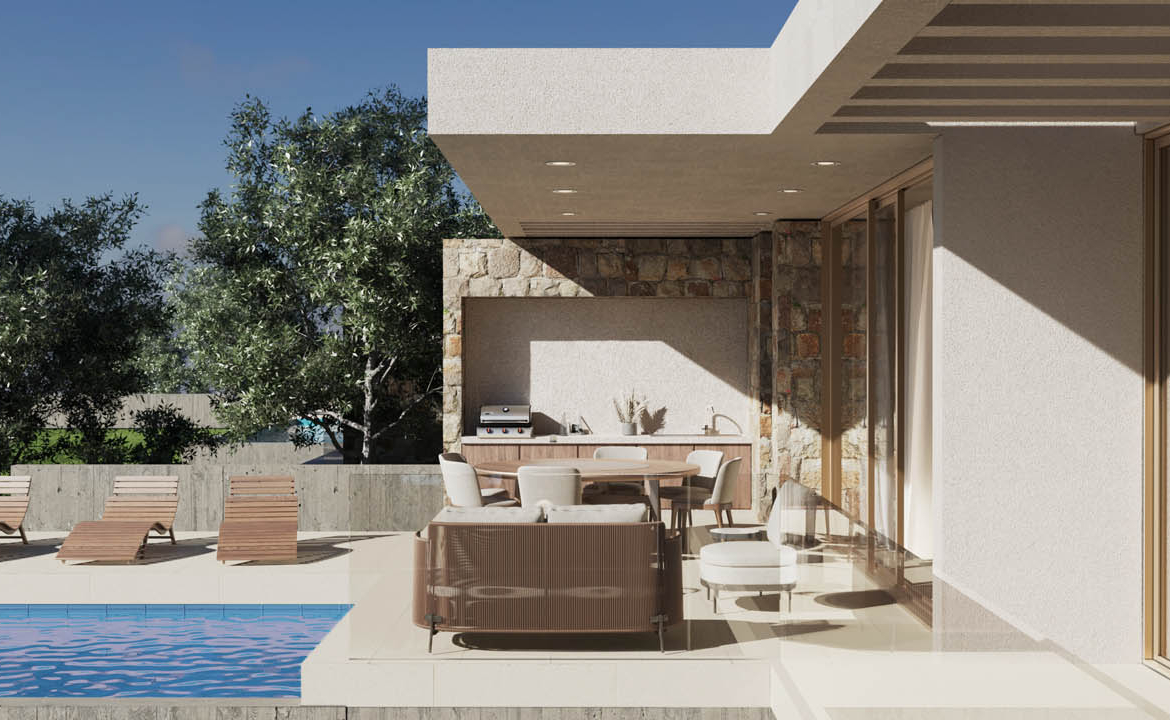 The true power of this villa lies in its refined design — in the architect’s skill to merge architecture with nature, not disrupt it. From the roadside, it appears as a modest silhouette — an elegant bungalow immersed in the shade of olive trees. Yet step to the other side, and a completely different picture unfolds — what I call refined architecture: a composition of light, space, natural stone, and greenery.