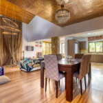 The modern kitchen, fitted with high-quality appliances and wooden cabinetry, is both functional and stylish, making it a joy to prepare meals.