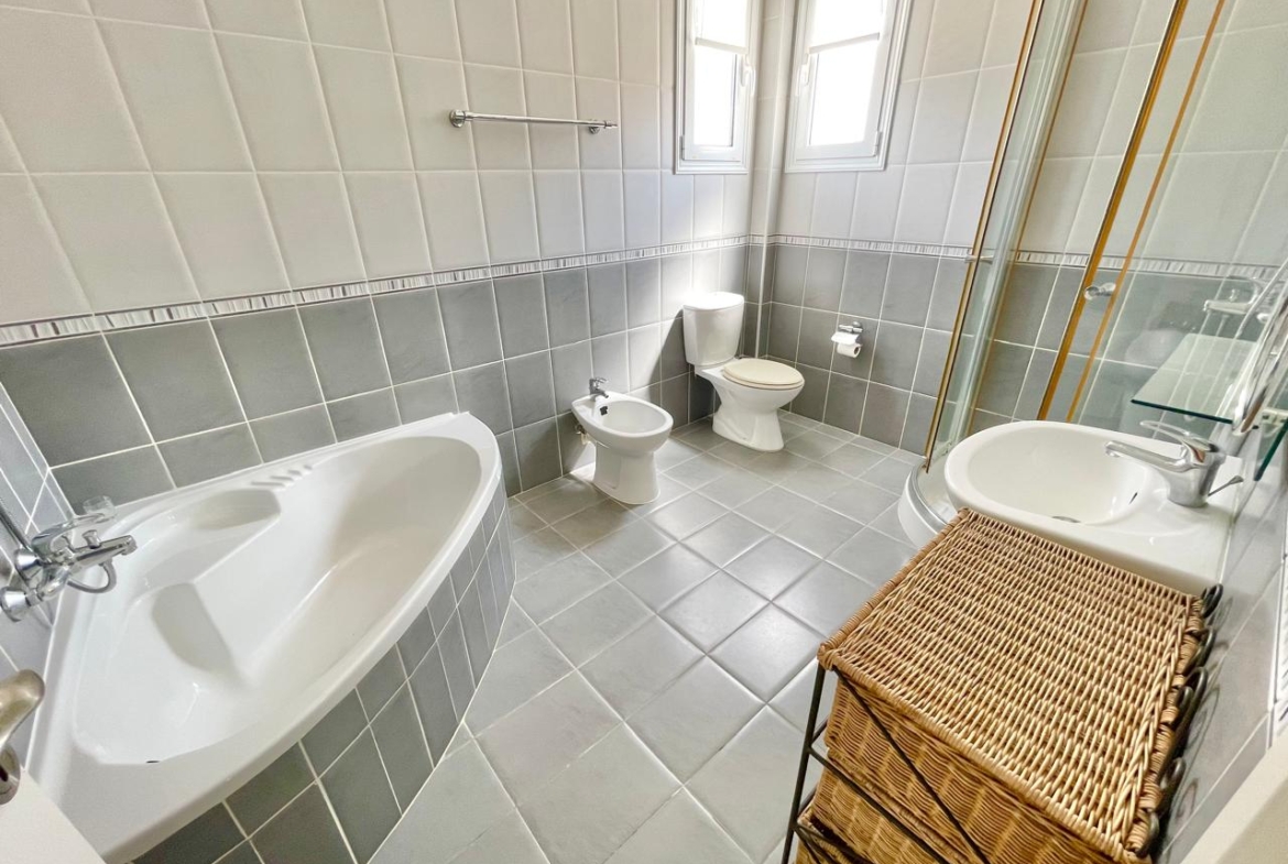 Upstairs is the more private zone. There are three bedrooms, each with its own charm. The master is a full suite where you can close the door to the world, step out onto the large terrace, breathe in the sea air, and let the peaceful setting restore your energy. The other two bedrooms are cozy and versatile — ideal for kids, guests, or home offices. A bright and well-equipped family bathroom completes this level.