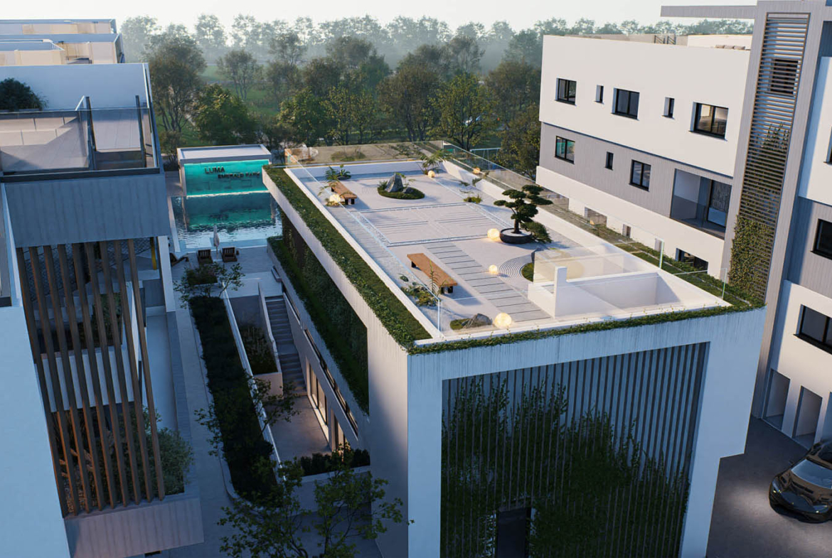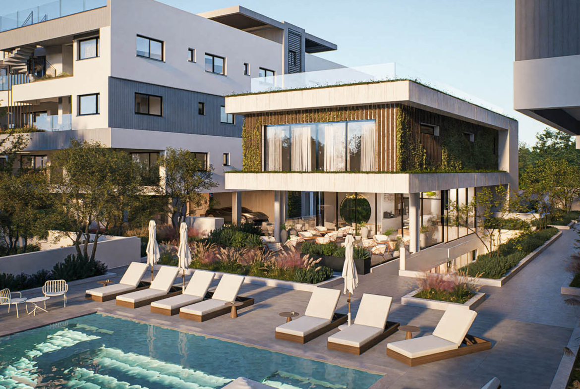 A new one-bedroom apartment in such a setting becomes more than simply a property; it becomes part of a carefully considered lifestyle concept. Everything here is guided by the idea of comfort, light, and inner harmony. The complex is being developed in a resort-style format, just minutes from the beach and the centre of Paphos, making this property especially appealing both as a private residence and as an investment. The project includes a communal swimming pool measuring 9 by 16 metres, a club house, gym, sauna and ice bath, café, walking paths, playground, landscaped public park areas, as well as a zen roof garden — a rare and highly expressive combination of amenities that allows residents to enjoy an urban rhythm of life without sacrificing privacy or a sense of retreat.