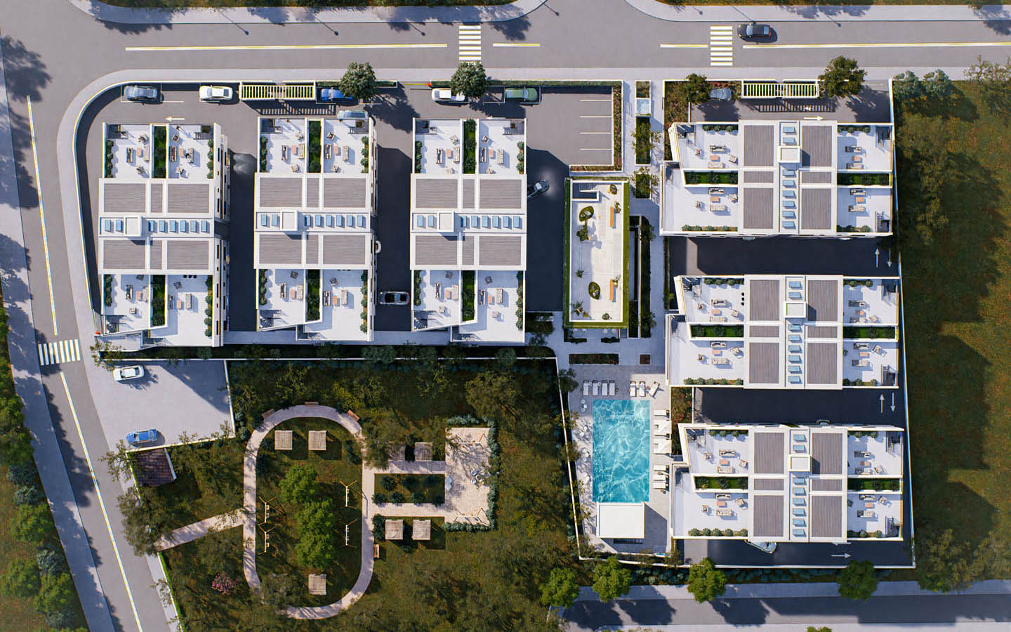Particular attention should also be given to the technical specification and included features. The price includes air-conditioning units in all rooms, covered parking, a storage room, double-glazed windows, electric shutters in the bedrooms, fitted kitchen cabinets and wardrobes, provision for an electric car charging station, intercom access at the building entrance, and a gated car entrance. Energy efficiency class A+ further enhances the value of the project and underlines its contemporary character. Additional options for personalisation are also available, including a photovoltaic system, underfloor heating, furniture package, and electrical appliances, allowing the future owner to adapt the space to their own rhythm of life and personal vision of comfort.