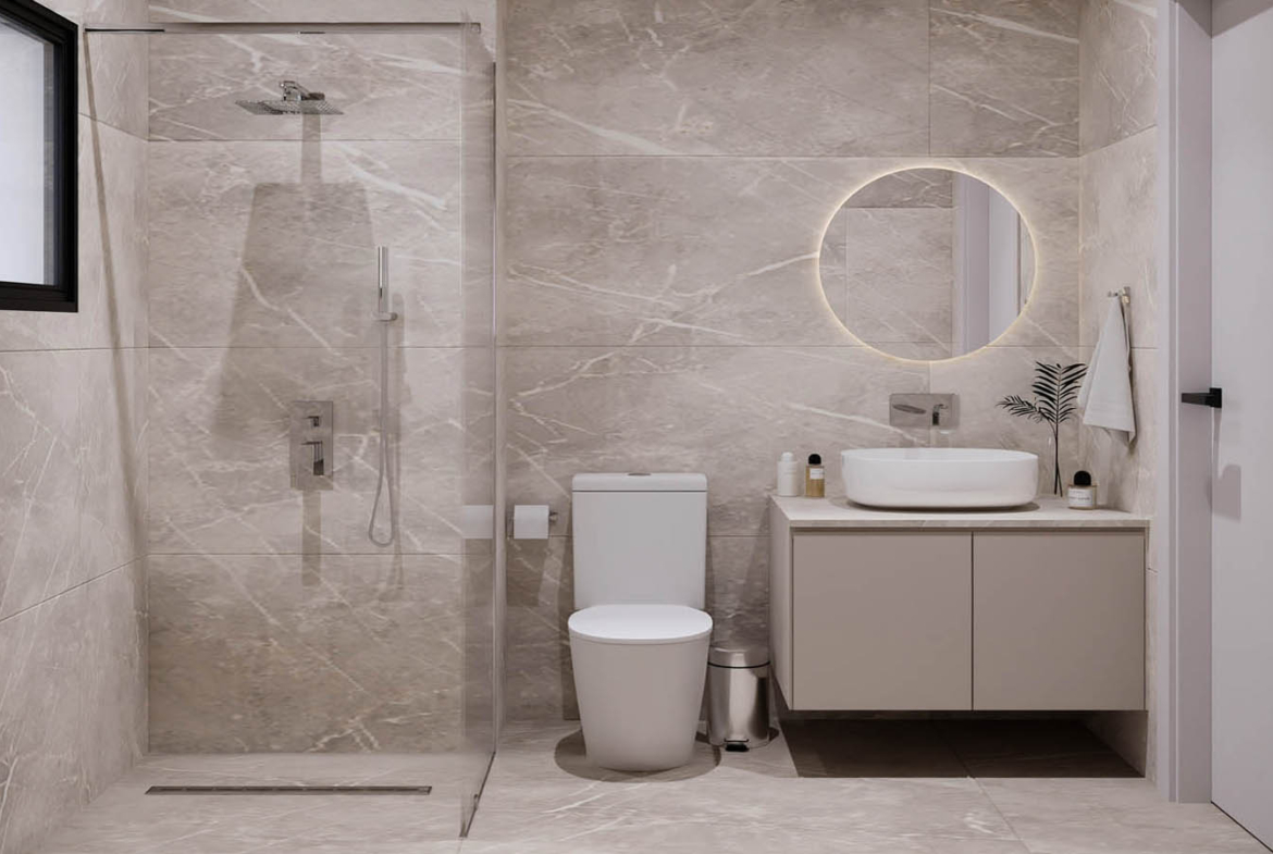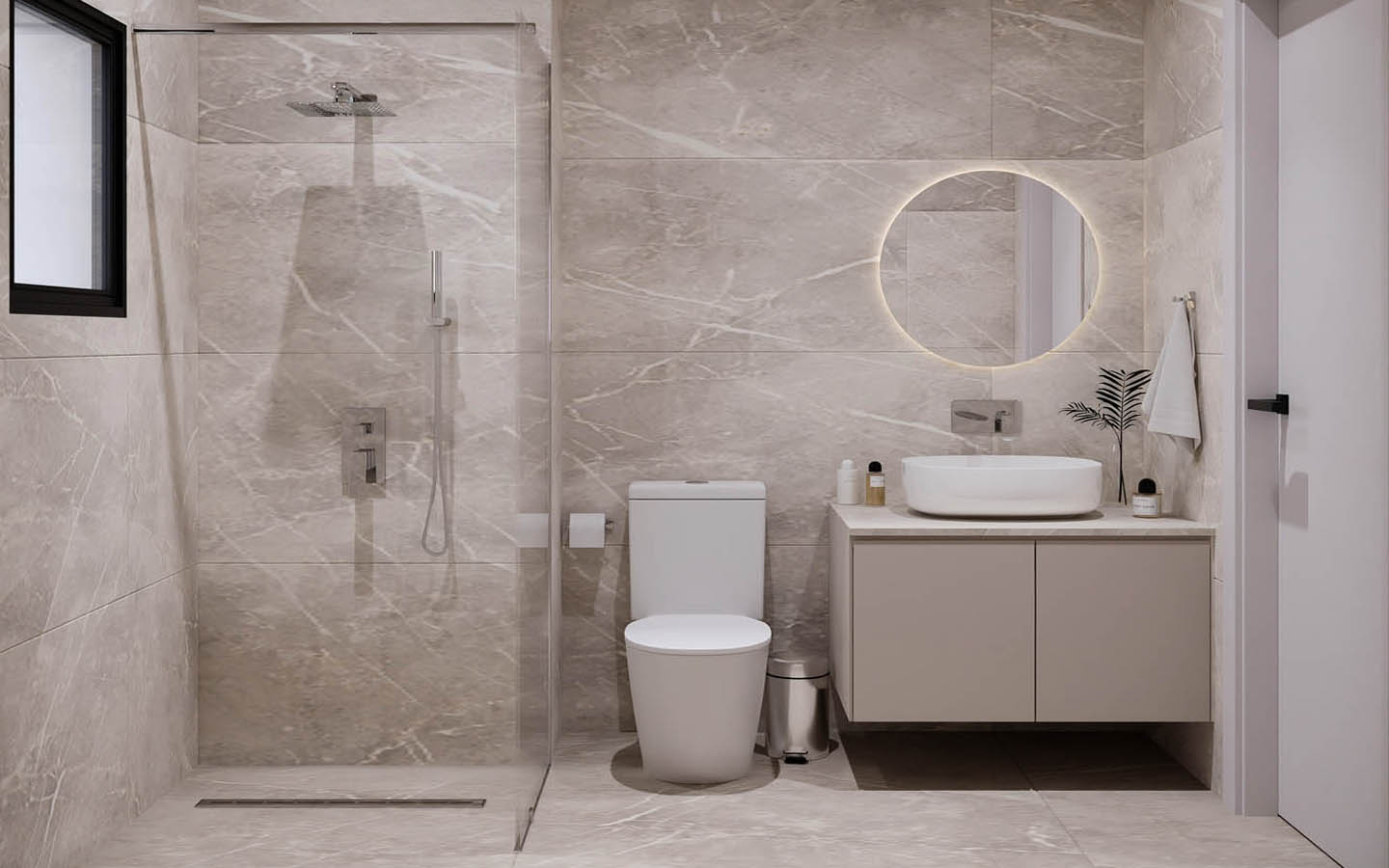 The one-bedroom apartments within the project have been designed with particular attention to proportion and comfort. The development offers well-balanced 1-bedroom units with functional layouts, one bathroom, and a private veranda that supports true indoor-outdoor living. Depending on the specific unit, the internal area of the one-bedroom apartments is approximately 52–57 sq.m., while covered verandas reach around 13 sq.m., which is a very strong specification for new urban living. Such a layout creates a rare sense of freedom: the apartment remains compact and rational, yet never feels confined. On the contrary, it is perceived as an intelligently organised home where everything is in its proper place and designed around the ease of daily life.
