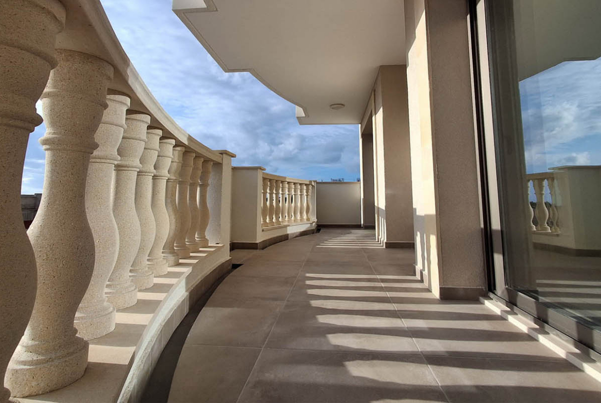 A large 13-meter veranda allows you to accommodate the whole family here for spending time outdoors. Morning tea drinking on such a balcony will give you a boost of energy and arise a desire to perform a creativity for the rest of the day. Here, you breathe fresh air, being among the green “beauties” and enjoy the views of the sea and a city. You are looking at the world as if from a bird’s eye view.