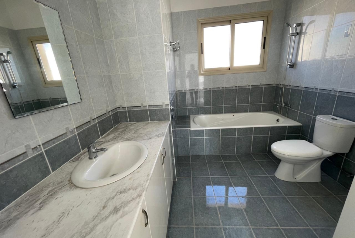 Bathrooms are spacious and finished with classic ceramic tiling in cool blue-grey hues. Everything is ready to use—no renovation needed, just your personal touch to bring the space to life.