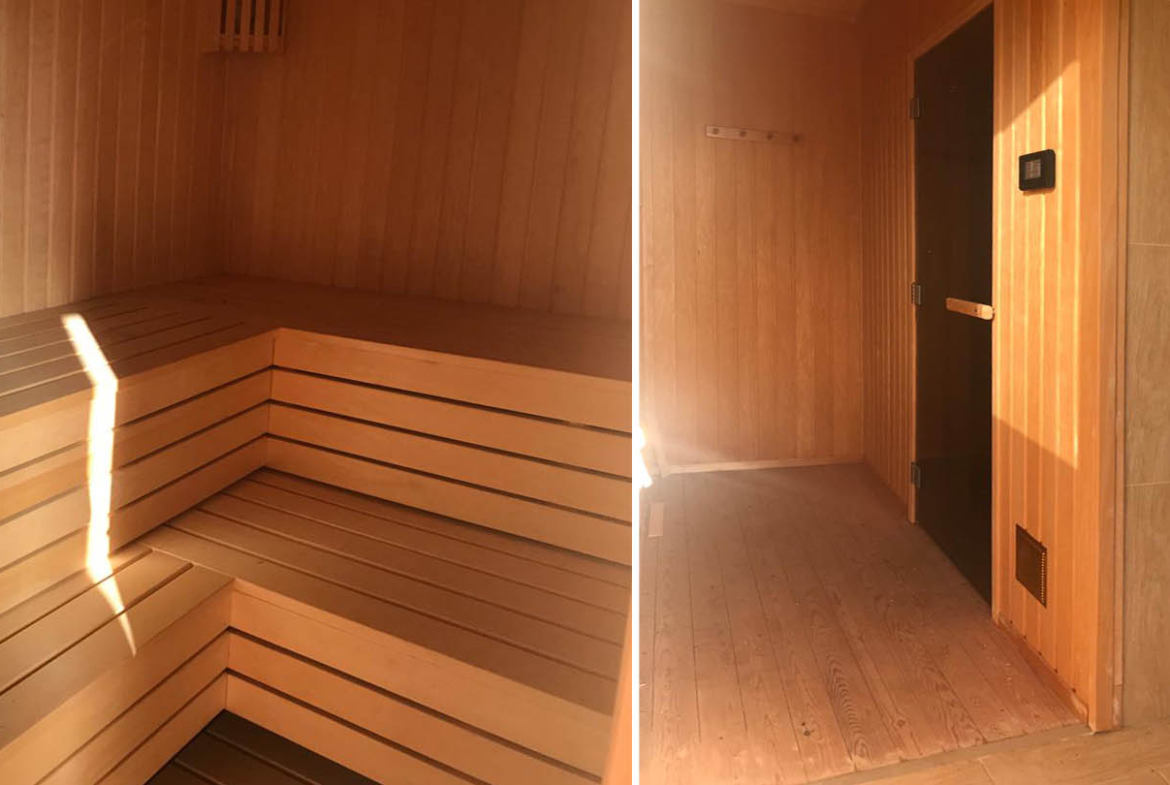 The basement level, approximately 120 sq.m, contains additional living areas, a second kitchen and an office — offering generous space for work, leisure, or hosting. A Finnish sauna with a stove, complemented by a separate shower cabin, is also located here, providing the perfect way to unwind after a full day.