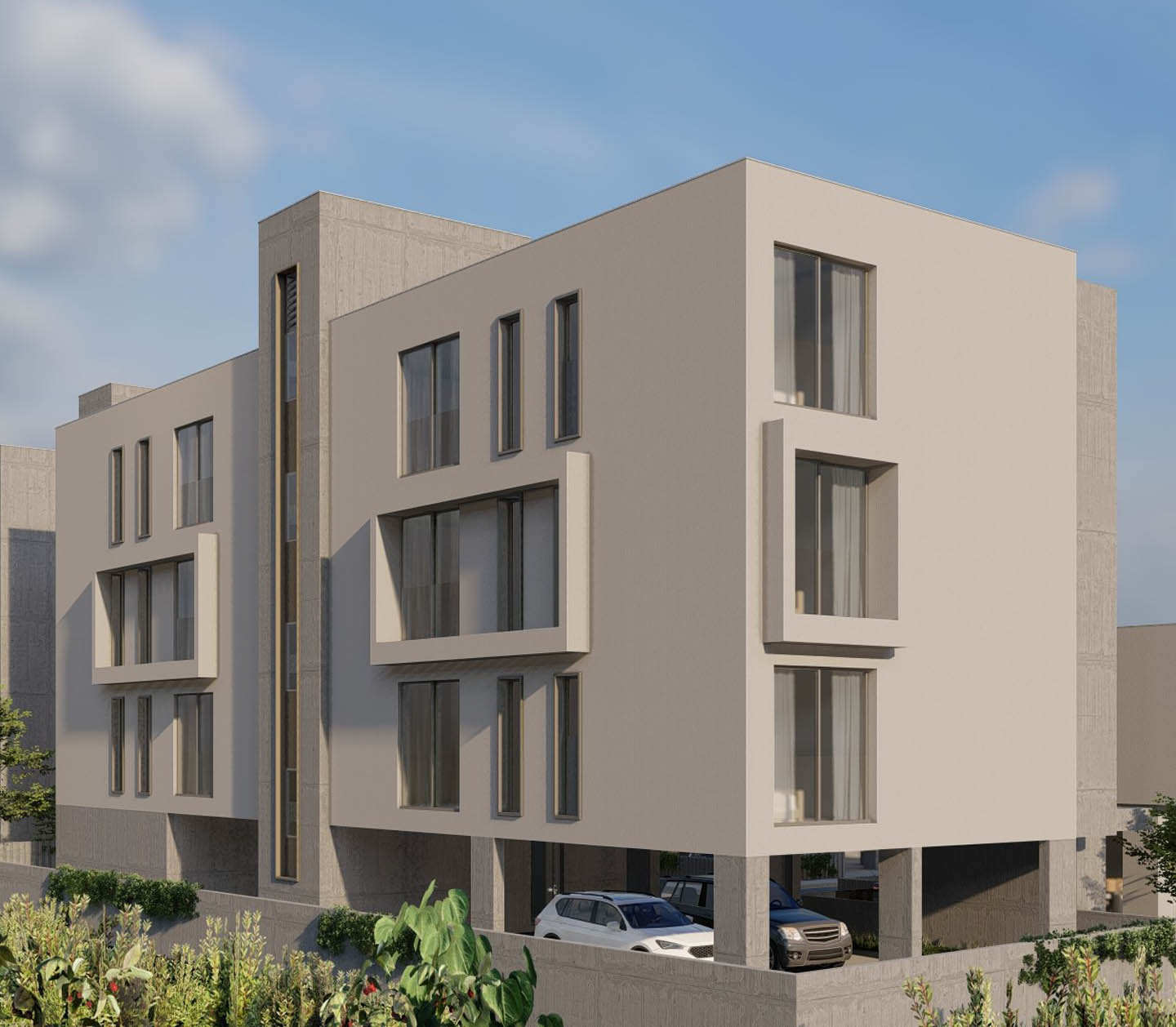 The development includes 22 luxury apartments and 4 villas, all set within a landscaped environment featuring native plants and an automated irrigation system. A shared green area with a children’s playground adds to the family-friendly appeal of the complex.