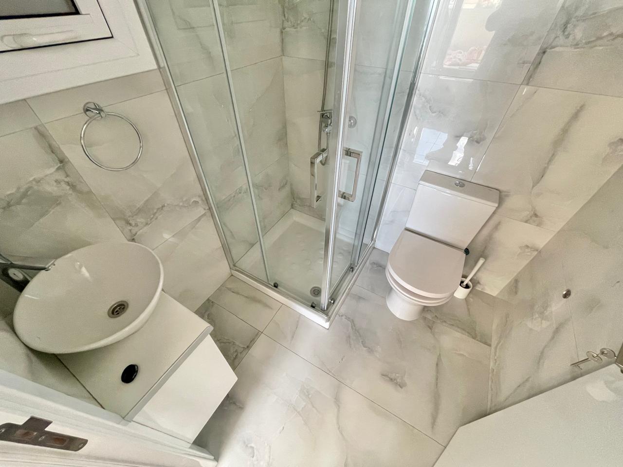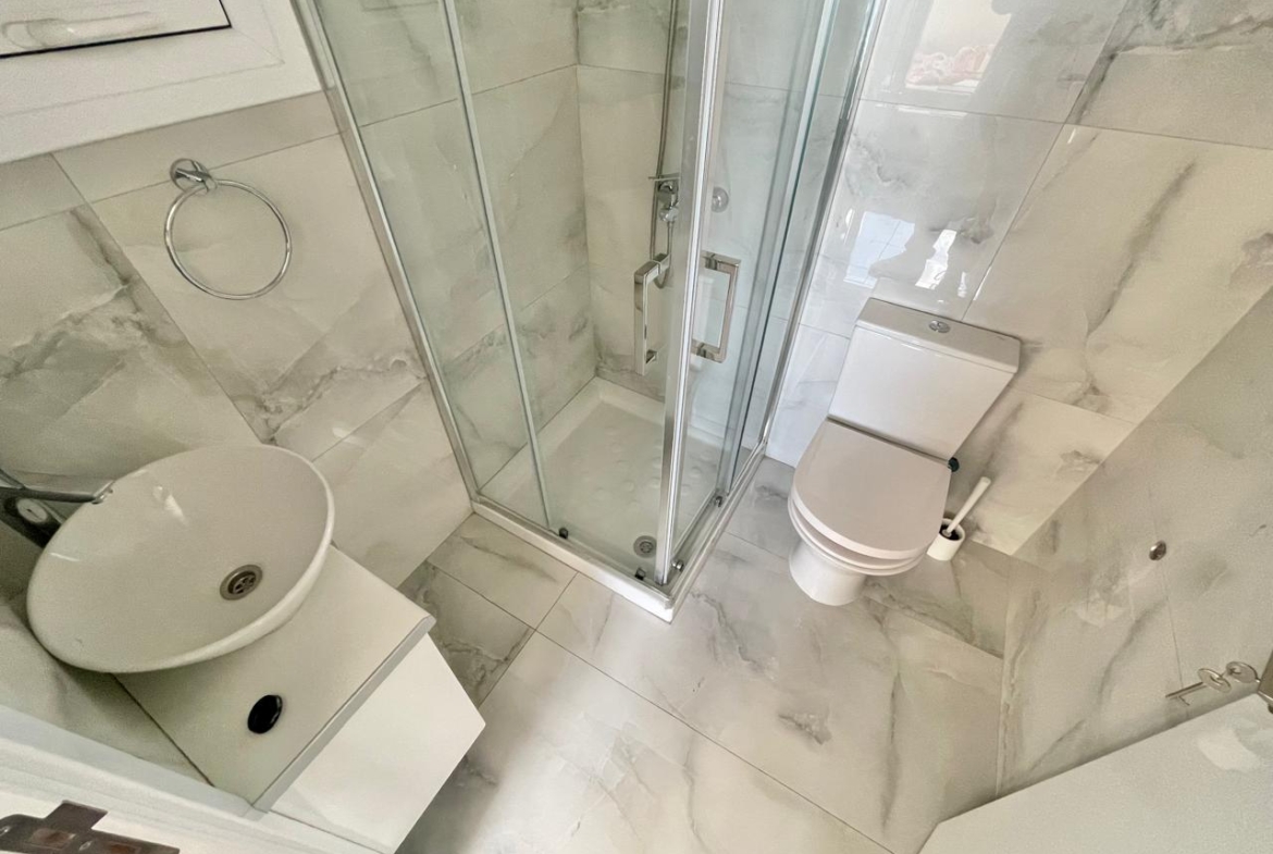 The 3 bathrooms are finished in marble tile, sparkling with newness. A walk-in shower with glass panels, modern sanitary ware, clean lines and light tones—it’s a space designed for living, not renovating.
