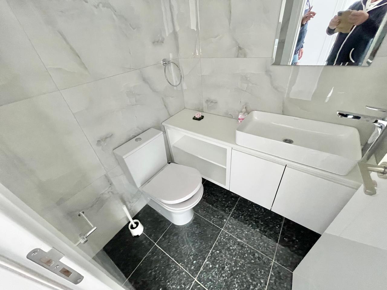 The building itself is crisp and confident, with clean architectural lines, soft-curved balconies, and white stone textures. A recent development, yet already well-settled and complete in its form and atmosphere. The entrance is neat, the parking convenient—details that quietly define real comfort from the moment you arrive.