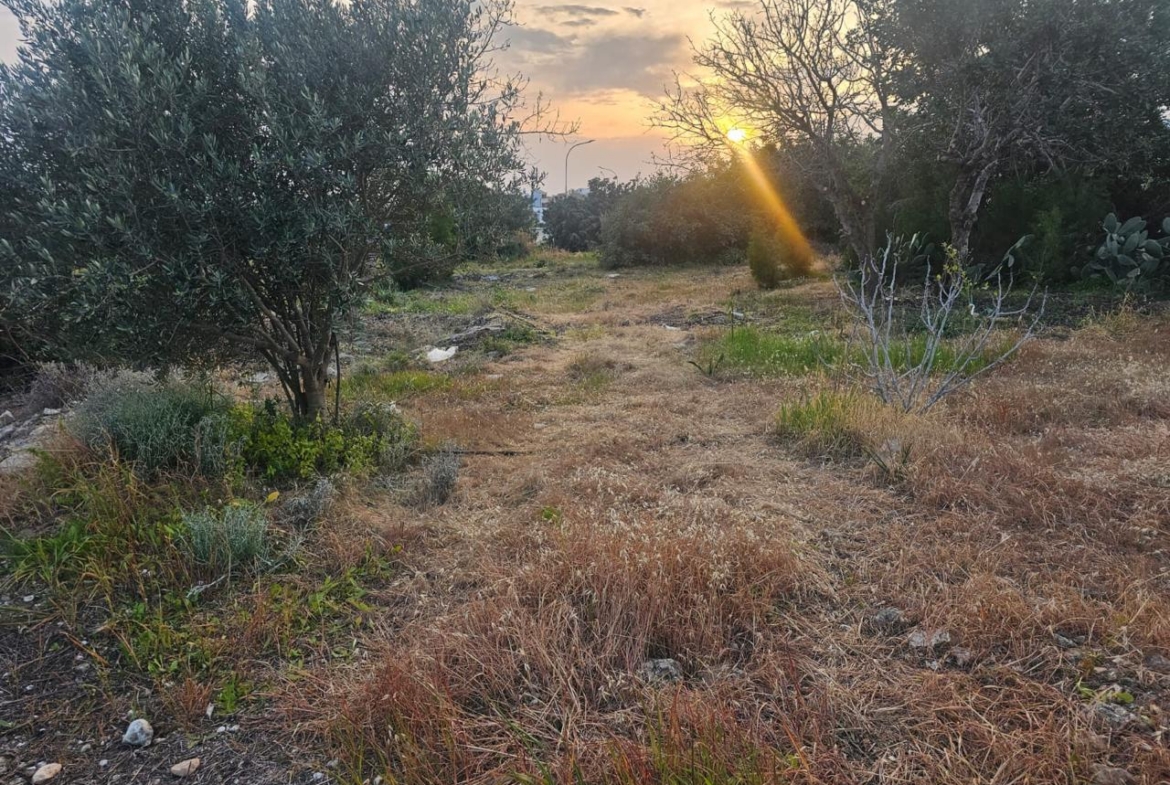 The gentle slope of the land gives the plot additional expressiveness. This is not a sharp incline that creates difficulties, but a soft movement in the terrain that makes the space feel deeper and more picturesque. Such a landscape offers the opportunity to shape the future architecture in an interesting way, to arrange terraces on different levels, to create smooth transitions between the entrance area, the garden, and the living spaces, and to open up views towards the surrounding greenery. In the evening light, the plot looks especially atmospheric: the rays of the sun pass through the tree canopies and fall across the grasses and stony ground, highlighting the calmness of this corner. There is something deeply authentic here — a sense of peace, privacy, and the gentle rhythm of Cypriot life that today is so highly valued by buyers seeking not just property, but a place for harmonious living.