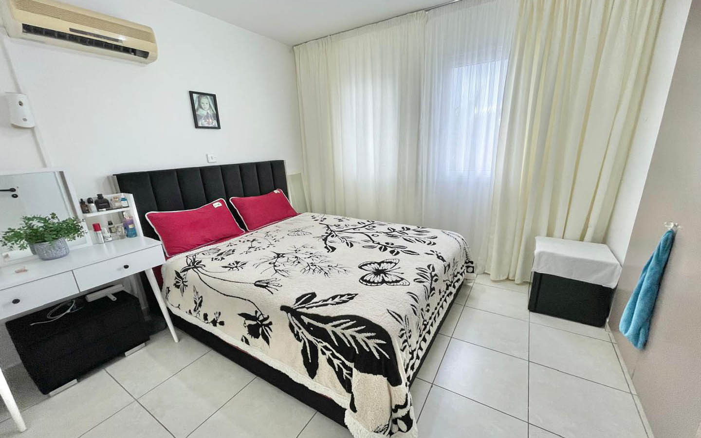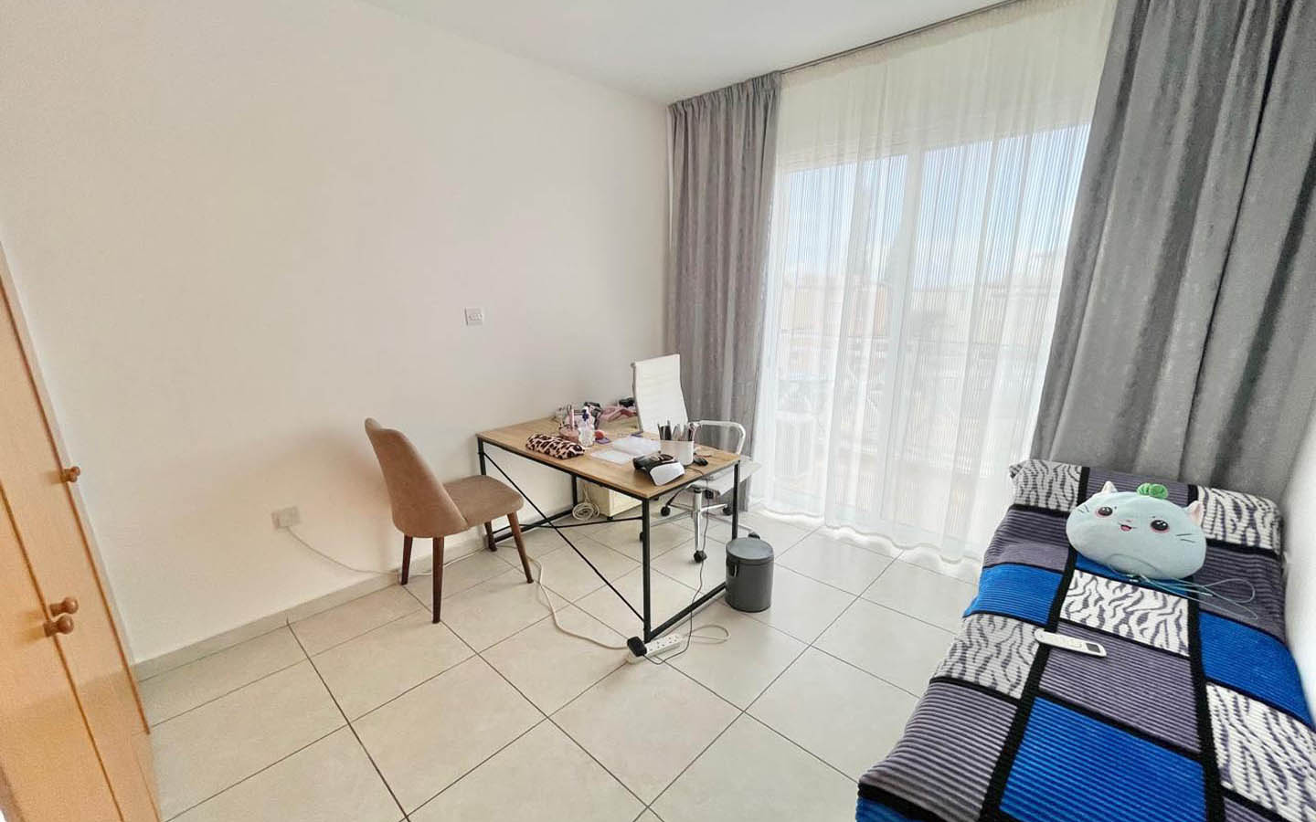 Upstairs you’ll find three bedrooms and a family bathroom. The rooms are bright, with balanced proportions and calm finishes—easy to personalise, yet already looking neat and in very good condition as they are. One of the nicest moments in this home is stepping out onto the balcony, where the view opens across the neighbourhood and out towards the sea line. It only takes a single step outside and a deep breath of fresh air to feel that you’re not living “somewhere,” but here—on an island, close to the coast.