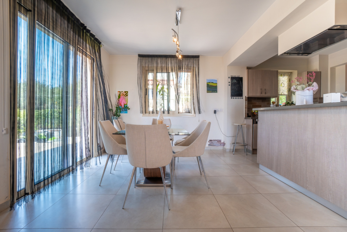 Tucked away in the charming village of Tala, nestled on the hillsides of Paphos, this delightfully cozy family villa invites you into a world where mornings begin with the golden glow of sunlight reflecting on glass balcony railings, and evenings end with a sea view bathed in crimson sunset. There is no city noise here — only the soft rustle of wind among the olive trees and the warm feeling of a home that offers both a sense of refuge and a space to be inspired.
