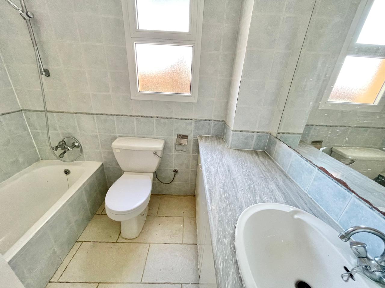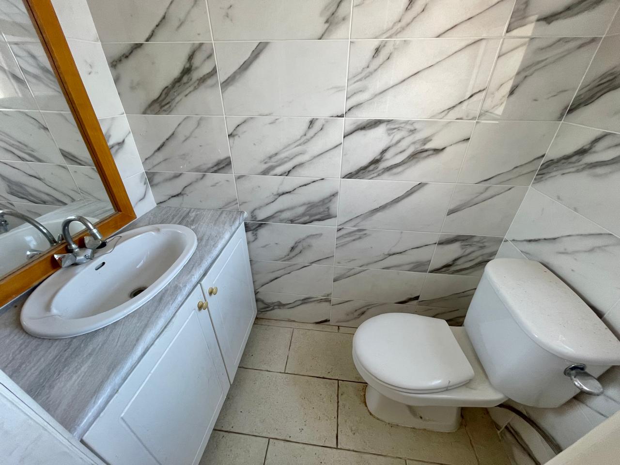 The house measures about 110 sq. m, smartly divided between social and private areas. A guest WC on the ground floor immediately reads as a thoughtful comfort detail. Upstairs are two calm, well-proportioned bedrooms: light ceramic floors, a full-wall built-in wardrobe, and access to a balcony or terrace through shutters—simple elements that make daily life work smoothly. The family bathroom, with a full tub, long countertop and broad mirror, is made for unhurried mornings: refresh the hardware and linens, and the whole room will feel renewed.