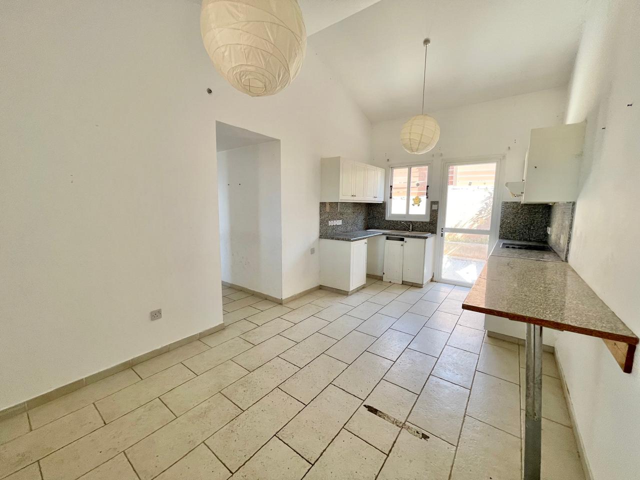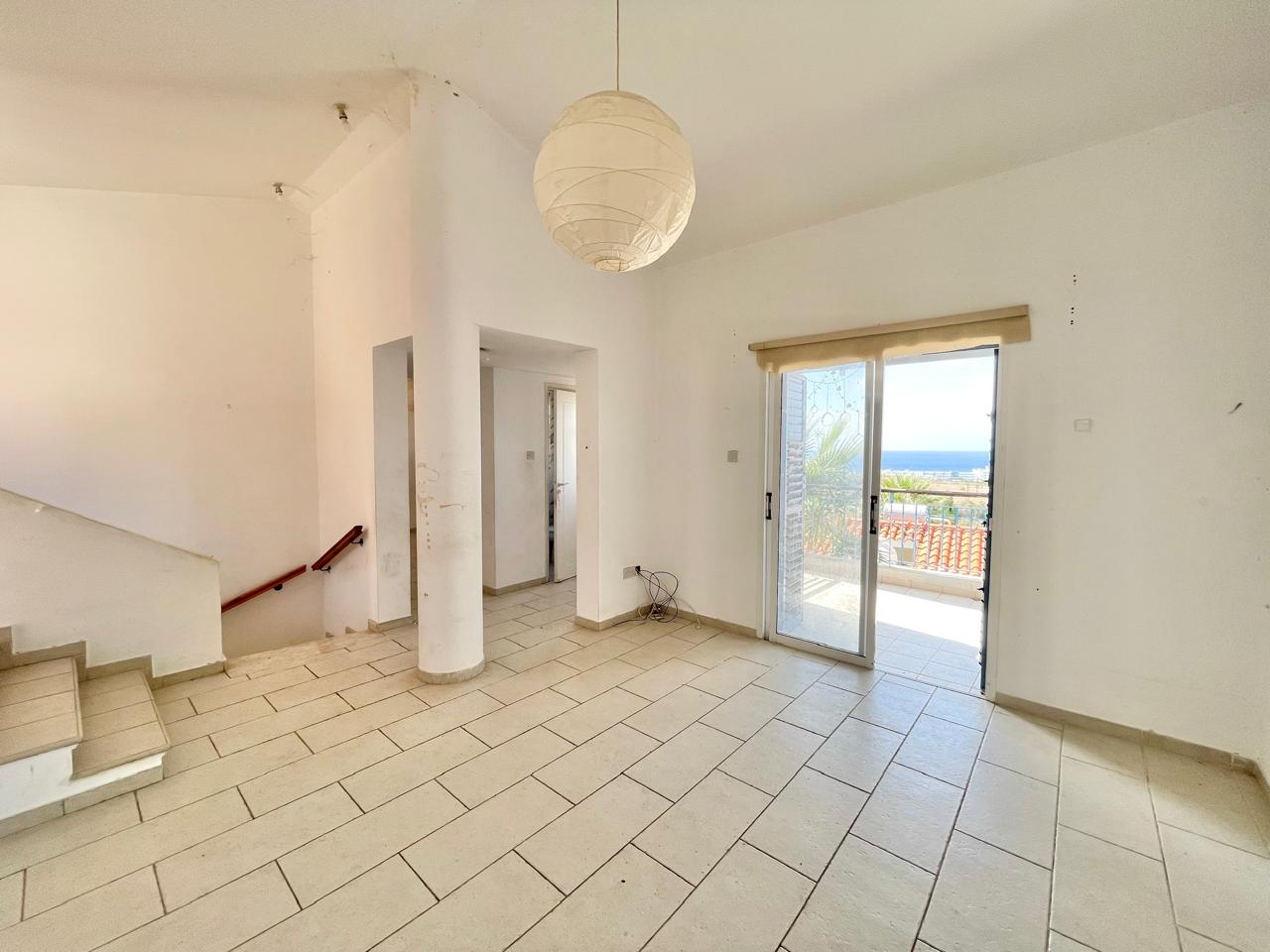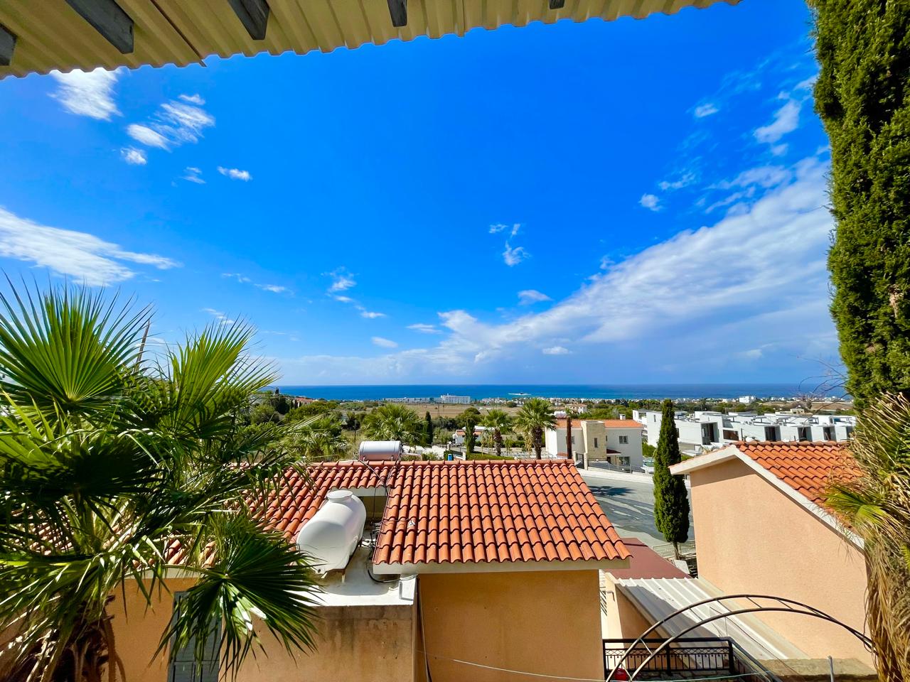 In Chloraka, where the sea line appears between cypress trees and the terracotta roofs of neighboring homes, a cozy, well-proportioned townhouse offers a rare sense of privacy for the area. The house faces the sea, and that ribbon of blue stays with you on the front steps and from the first-floor balcony—a reminder that Paphos’ beaches and promenade are only minutes away.