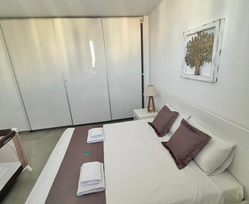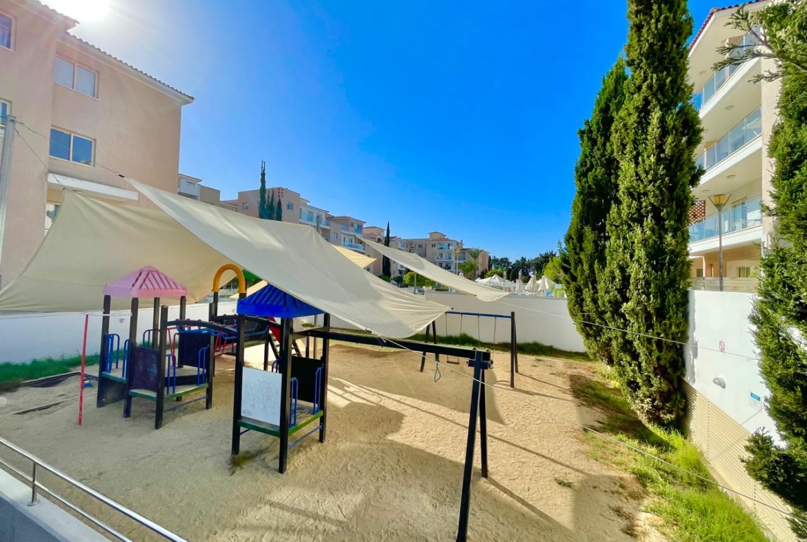 Practicalities are sorted in advance. There is organised parking, so the car is taken care of. The apartment has air-conditioning, and water heating comes from solar panels — economical and eco-friendly for Cyprus. It is sold furnished: bring your suitcases, place your books on the shelf, and the home immediately feels complete. This format is especially appreciated by those choosing a property without the risks of construction or long waiting times. A ready home means a well-run complex, predictable running costs and no surprises: you can see everything today and start using it right after the deal.