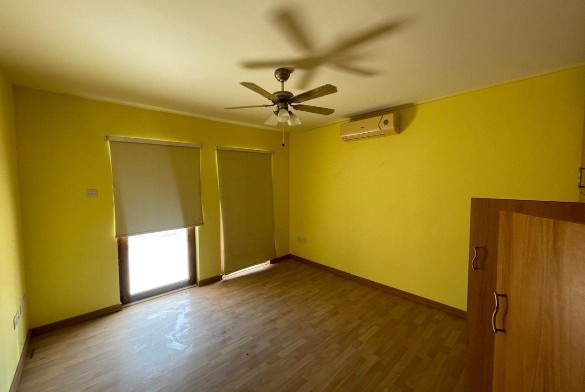 The staircase leads up to a calm private zone of three bedrooms. The rooms are well-shaped, with large window openings and access to the balcony; two have air-conditioning units and ceiling fans. Laminate floors need refreshing but retain their geometry. The shared bathroom, lit by two windows, brings in daylight; a classic tile layout and a full bathtub form a solid base for a modern refresh. On this floor it’s a pleasure to open the balcony door: the view rolls away into gentle hills, the breeze brings the scent of dry herbs—and that’s when you understand why it’s worth investing in a home with character.