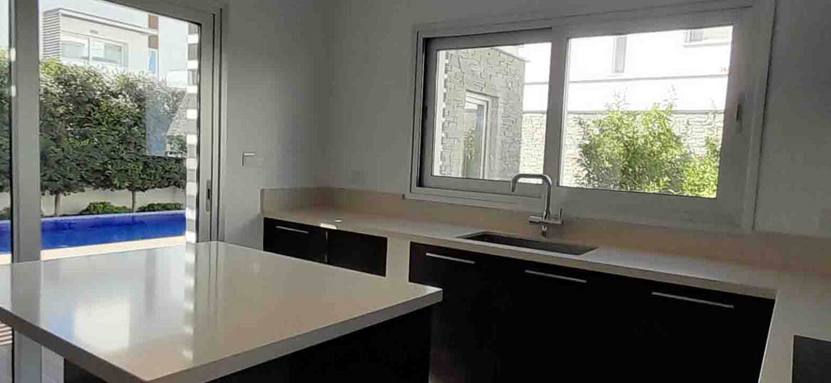This feeling of light is one of the villa’s greatest strengths. It reflects from the pale walls, glides across smooth surfaces, softens the strict lines of the fittings, and highlights the purity of the architecture. As the home is offered unfurnished, this does not feel like an absence, but rather like a rare advantage: the new owner receives a complete, high-quality foundation into which they can bring their own taste, their own colour palette, their own rhythm of life. There is no need to undo someone else’s choices — you can begin shaping the home around yourself immediately, without losing time to construction works, waiting for completion, or the complications that often accompany such processes. This is already a completed home with Title Deeds, and that means choosing peace of mind, legal clarity, and the ability to begin a new chapter almost at once.