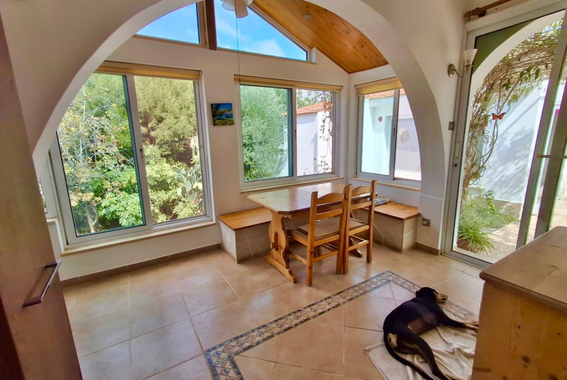 Daily life here feels wonderfully Cypriot. Breakfast in a bright bay with high windows; a quick daytime run into Paphos for errands because the city’s infrastructure is close at hand; dinner under the arches facing the lit garden and an unhurried conversation by the fire. And when you need solitude, the studio at the back becomes a creative workshop. This is the kind of place that makes the phrase “property for sale in Tremithousa, Paphos” acquire human meaning: it isn’t a line in an ad but a home with character, ready to befriend your everyday life.