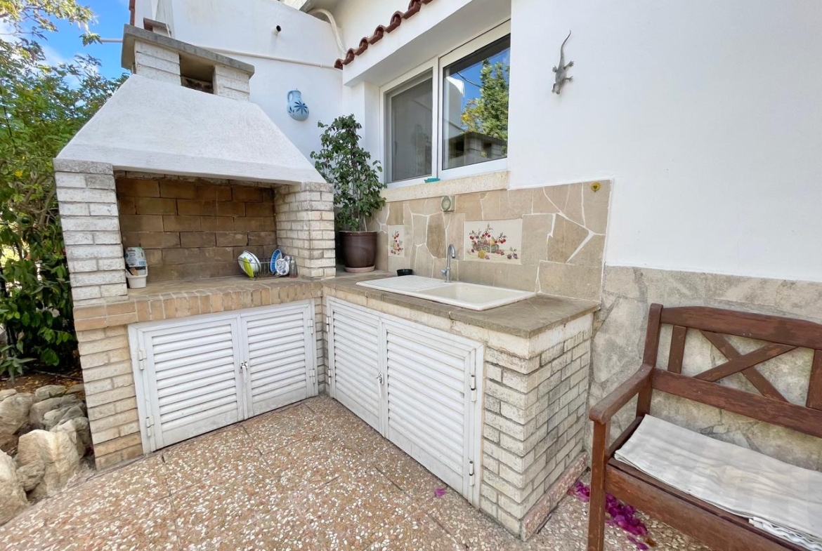 From the veranda—designed like a long gallery—life flows gently indoors and back out again. A daily ritual takes shape here: morning coffee in the shade of the arches, an unhurried chat at the wooden table, and the evening light settling softly on the stone trim of the planters. Next door waits a full outdoor kitchen and barbecue: a brick oven with a high hood, sink, worktop and enclosed cabinets—everything so the marinade can bide its time and plates and spices are within easy reach. The garden is dense and mature, with the kind, steady feel of an old friend—pines, climbers, neat borders—shielding the 810 m² plot from the world and giving it true privacy. If you wish, part of the yard can easily become the perfect spot for a pool—the place practically calls for turquoise water.
